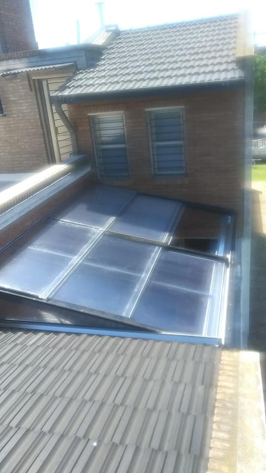 Techo corredizo dos sectores apertura 66% aluminio policarbonato manual