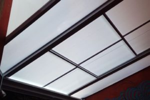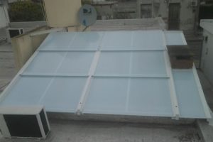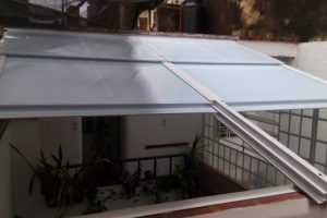 Dos sectores corredizos 50% de apertura manual aluminio blanco policarbonato cristal